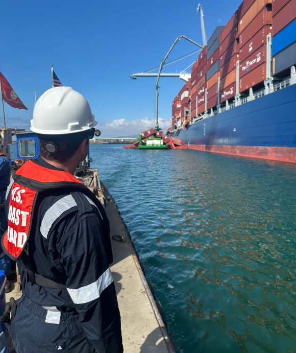 “In just a few days, we have made significant progress in securing the vessel cargo and recovering containers,” said Capt. Stacey Crecy, Commander of U.S. Coast Guard Sector Los Angeles – Long Beach. She credited vessel managers, port officials, and ILWU labor for working together safely.