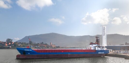bound4blue and Amasus Shipping have completed the installation of a 22-metre eSAIL® on the general cargo vessel Fluvius Tavy. The work took place at Astander Shipyard in Santander, Spain. It marks the second time Amasus has adopted bound4blue’s wind propulsion technology. The new unit is the largest suction sail ever installed on a general cargo … Continue reading Amasus adds second bound4blue eSAIL® to cargo fleet