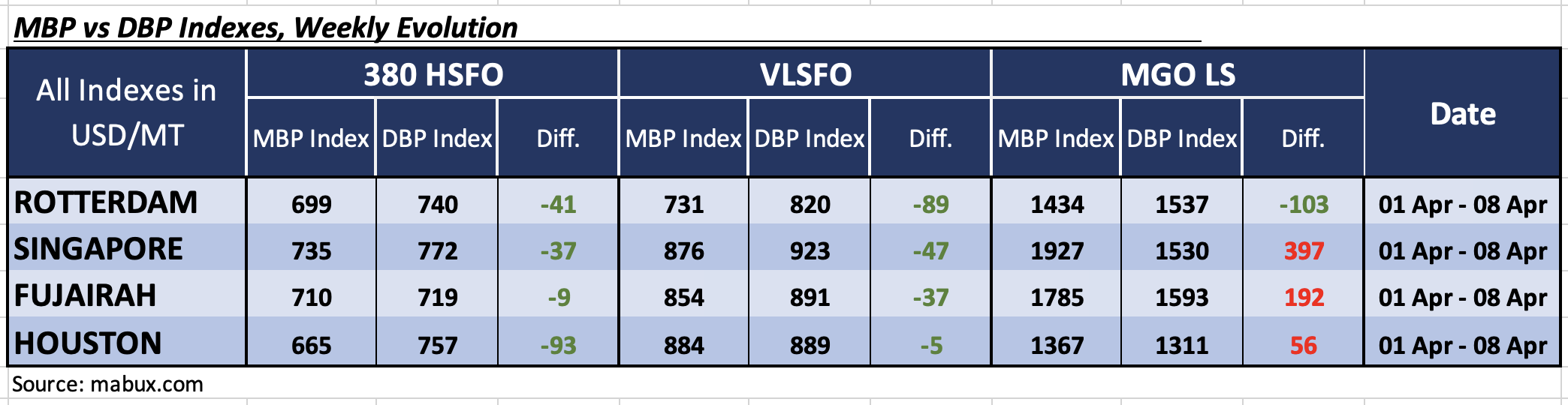 “Following the ceasefire announcement, valuation dynamics have shifted notably toward undervaluation,” Ivanov commented. Following the announcement of a two-week ceasefire in the Middle East, MDI dynamics have increasingly shifted toward undervaluation, particularly in the 380 HSFO and VLSFO segments. We expect this undervaluation trend in bunker fuels to persist into the coming week.