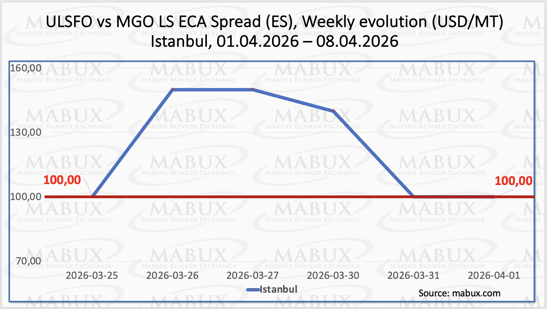 The Istanbul ECA Spread (ES) remained unchanged over the week at US$ 100.00, despite peaking at US$ 150.00 amid heightened market volatility. The weekly average declined by US$ 10.00, indicating a partial easing of upward pressure. The Venice ECA Spread remains temporarily suspended due to the absence of consistent market quotations. Amid the ongoing de-escalation of tensions in the Middle East, the ECA Spread is expected to hold near current levels in the short term.