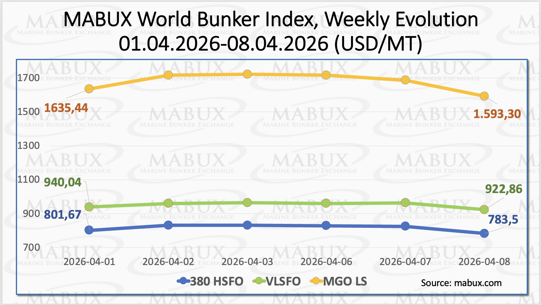 The upward trajectory of bunker prices, driven by escalating tensions in the Middle East, reversed sharply on April 8 following reports of a two-week ceasefire. “The market has entered a corrective phase after a prolonged rally,” said Sergey Ivanov, Director, MABUX.