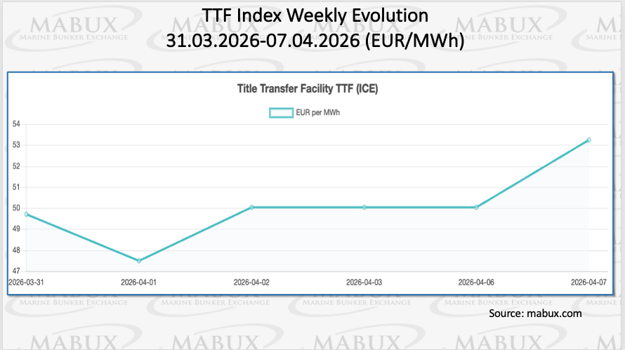 Despite this uptick, storage levels remain significantly lower—by 32.85%—compared to the level observed on January 1, 2026 (61.46%). At the end of Week 15, the European gas benchmark TTF posted a notable increase, rising by EUR 3.547/MWh to EUR 53.247/MWh, compared to EUR 49.700/MWh the previous week, thereby moving back above the EUR 50.00/MWh threshold.