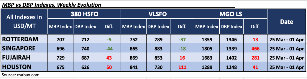Amid the ongoing escalation of the conflict in the Middle East, the MABUX Market Differential Index (MDI)—which reflects the ratio between market bunker prices (MBP) and the MABUX digital bunker benchmark (DBP)—demonstrated mixed dynamics over the week, with no consistent trend observed across the major global hubs of Rotterdam, Singapore, Fujairah, and Houston: