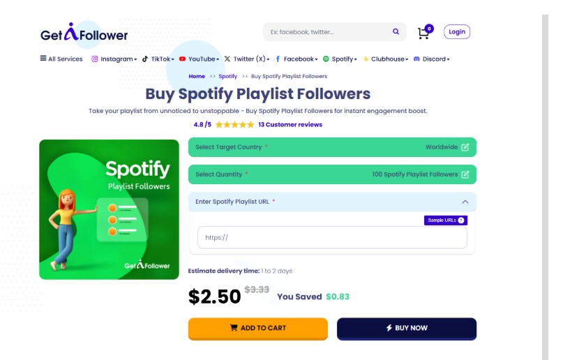 GetAFollower is a simple option for artists who want to get Spotify followers without dealing with complex setups or multiple tiers. The platform focuses on speed and ease, making it useful for quick boosts or smaller campaigns.