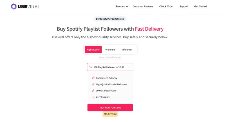 Overall, UseViral stands out for its reliable delivery, multiple quality tiers, and scalable pricing, making it a strong option for artists who want to improve how their Spotify profile looks without making growth appear unnatural.