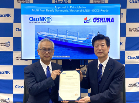 ClassNK has issued an Approval in Principle (AiP) for Oshima Shipbuilding’s concept design of a bulk carrier capable of using multiple alternative fuels, ammonia, methanol, and LNG, and ready for onboard CO₂ capture and storage (OCCS).