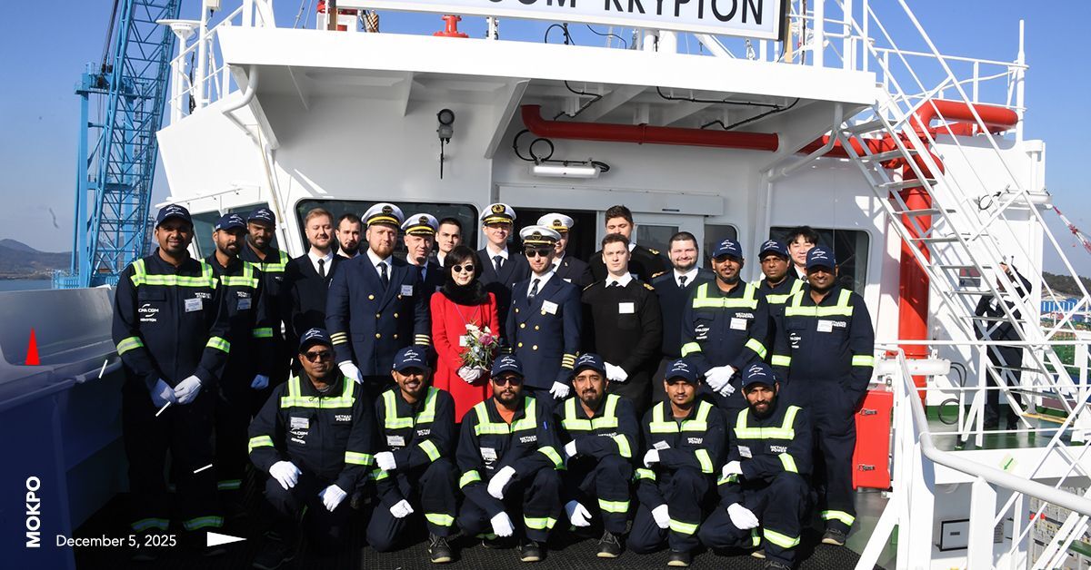 CMA CGM has officially named its new dual-fuel methanol vessel, the CMA CGM KRYPTON, in South Korea. The ship is commanded by Captain Vadym Byelash, and the godmother is Ms. Eun-Hyung Lee, Professor at Kookmin University. 🇰🇷