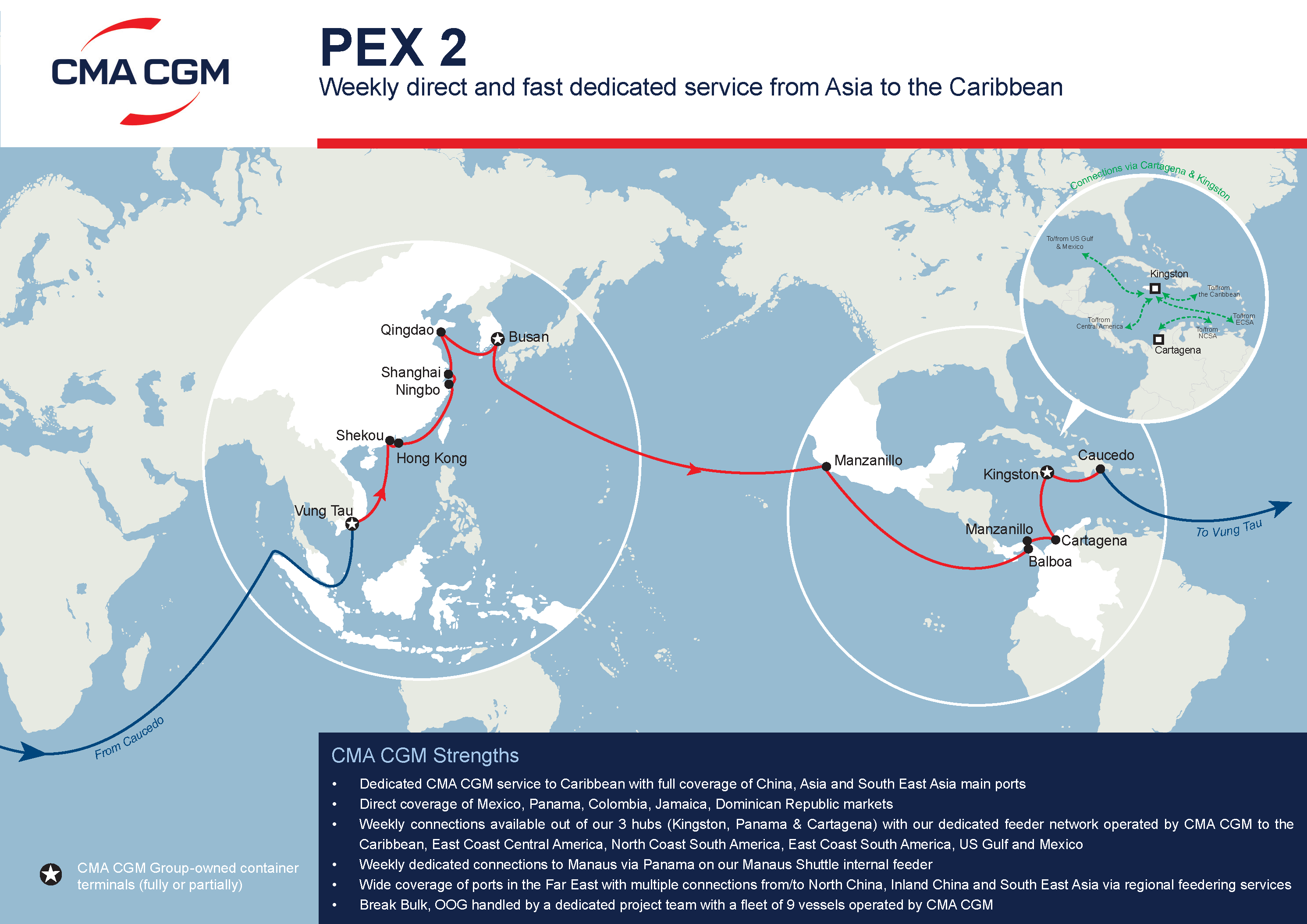 According to the carrier, PEX2 will continue to operate as a fully dedicated service between Asia, the Caribbean and Mexico, offering direct connectivity to the Dominican Republic, Panama, Jamaica, Colombia and Mexico, supported by extensive feeder networks from major hubs in Jamaica, Panama and Colombia.
