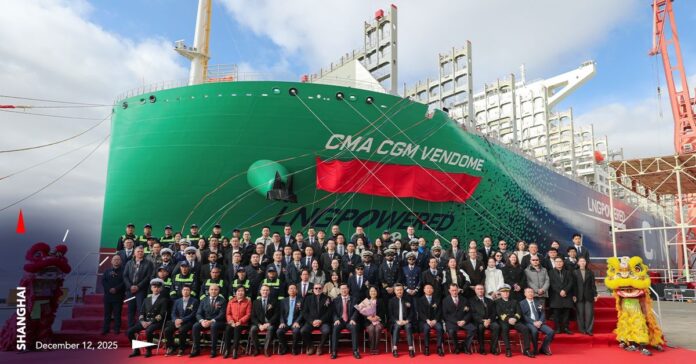 CMA CGM has officially added the CMA CGM VENDOME to its fleet. The 23,000 TEU vessel operates on dual-fuel LNG. Captain Anton Tache commands the ship. Ms. Feng Ping, Vice President of CHERY International, serves as the Godmother.