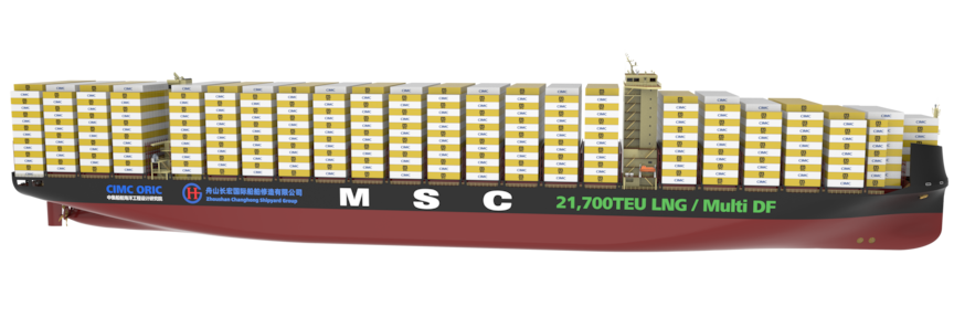 DNV has awarded an Approval in Principle (AiP) to Zhoushan Changhong International and CIMC ORIC for a new 21,700 TEU multi-fuel ready ultra-large container ship design developed in partnership with MSC, marking a further step toward next-generation, low- and zero-carbon mainline container shipping.
