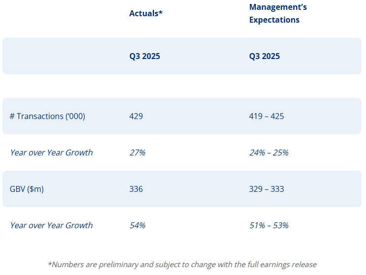 Transactions: 429,000 in Q3 2025, up 27% year over year, above expectations.