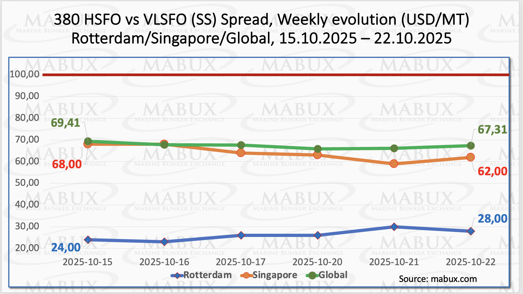 ”Current market dynamics suggest that an upward trend is emerging in the global bunker market, supported by strengthening crude benchmarks and steady demand fundamentals. Consequently, bunker indices are expected to resume moderate growth in the forthcoming week”, added Sergey Ivanov, Director, MABUX.