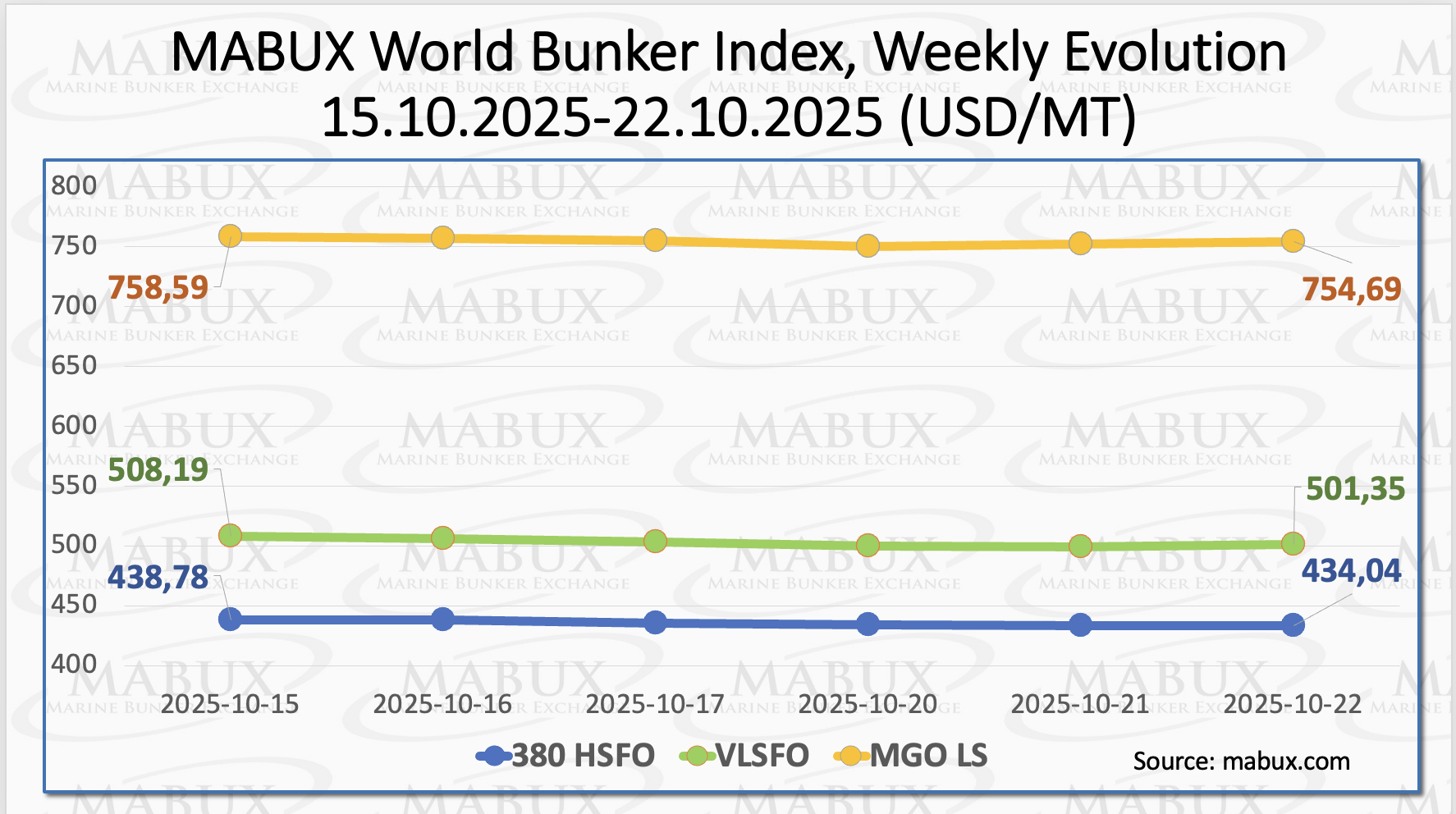 ”Current market dynamics suggest that an upward trend is emerging in the global bunker market, supported by strengthening crude benchmarks and steady demand fundamentals. Consequently, bunker indices are expected to resume moderate growth in the forthcoming week”, added Sergey Ivanov, Director, MABUX.