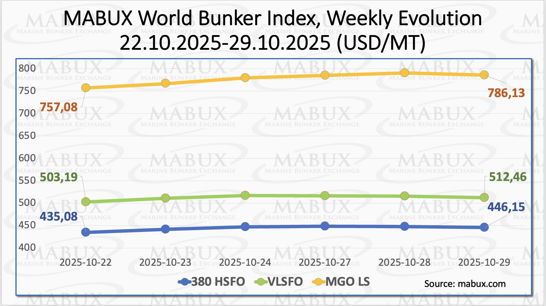 ”As of the time of writing, the global bunker market showed no clear price dynamics, with movements remaining moderate and mixed across key fuel grades”, commented Sergey Ivanov, Director, MABUX.