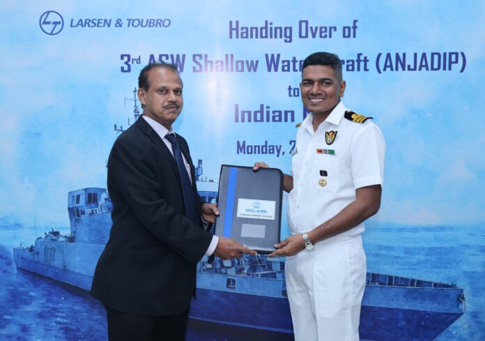The Indian Navy has taken delivery of Anjadip, the third vessel under the Anti-Submarine Warfare Shallow Water Craft (ASW SWC) program. The handover took place on December 22, 2025, at INS Adyar in Chennai.