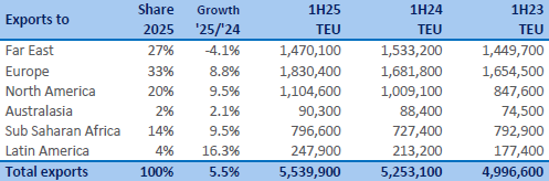 Notably, only exports to the Far East declined, falling by over 4.1%. North America and sub-Saharan Africa posted the fastest growth rate at 9.5%.