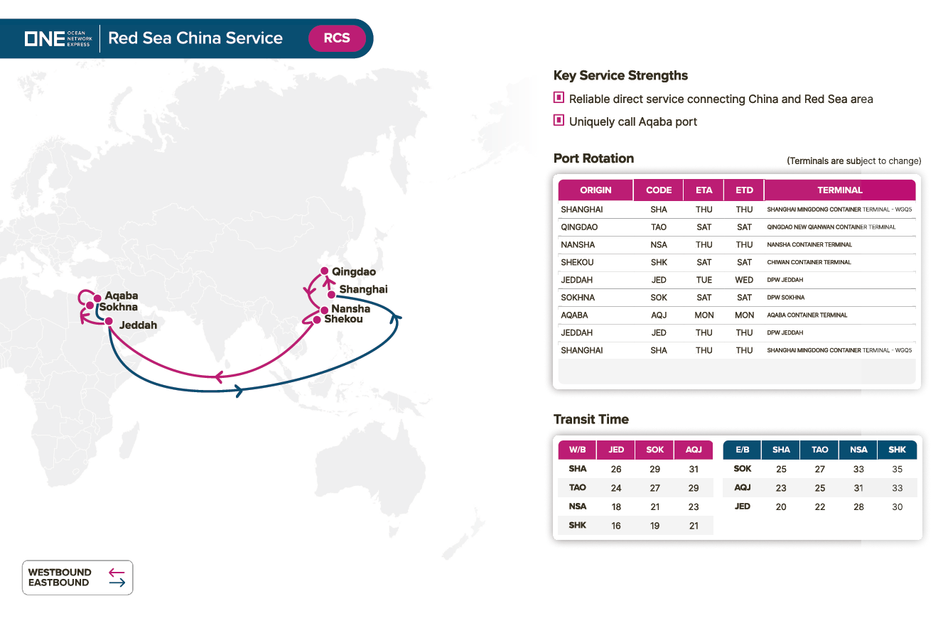 Ocean Network Express (ONE) has launched the Red-Sea China Service (RCS) to improve connectivity between China and Red Sea ports. The new service optimizes network coverage and offers reliable shipping solutions for customers.