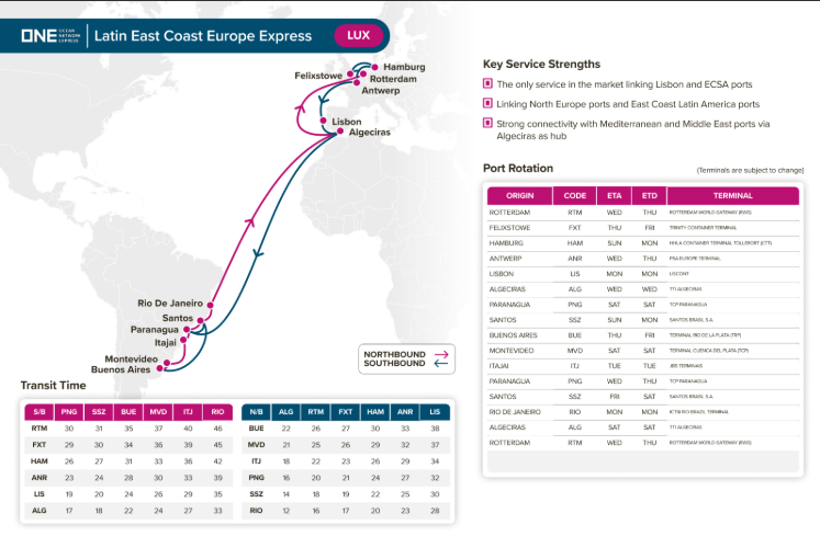 Ocean Network Express (ONE) has announced a proforma adjustment to its Latin East Coast Europe Express (LUX) service, aimed at improving schedule reliability, stability and overall service performance for customers.