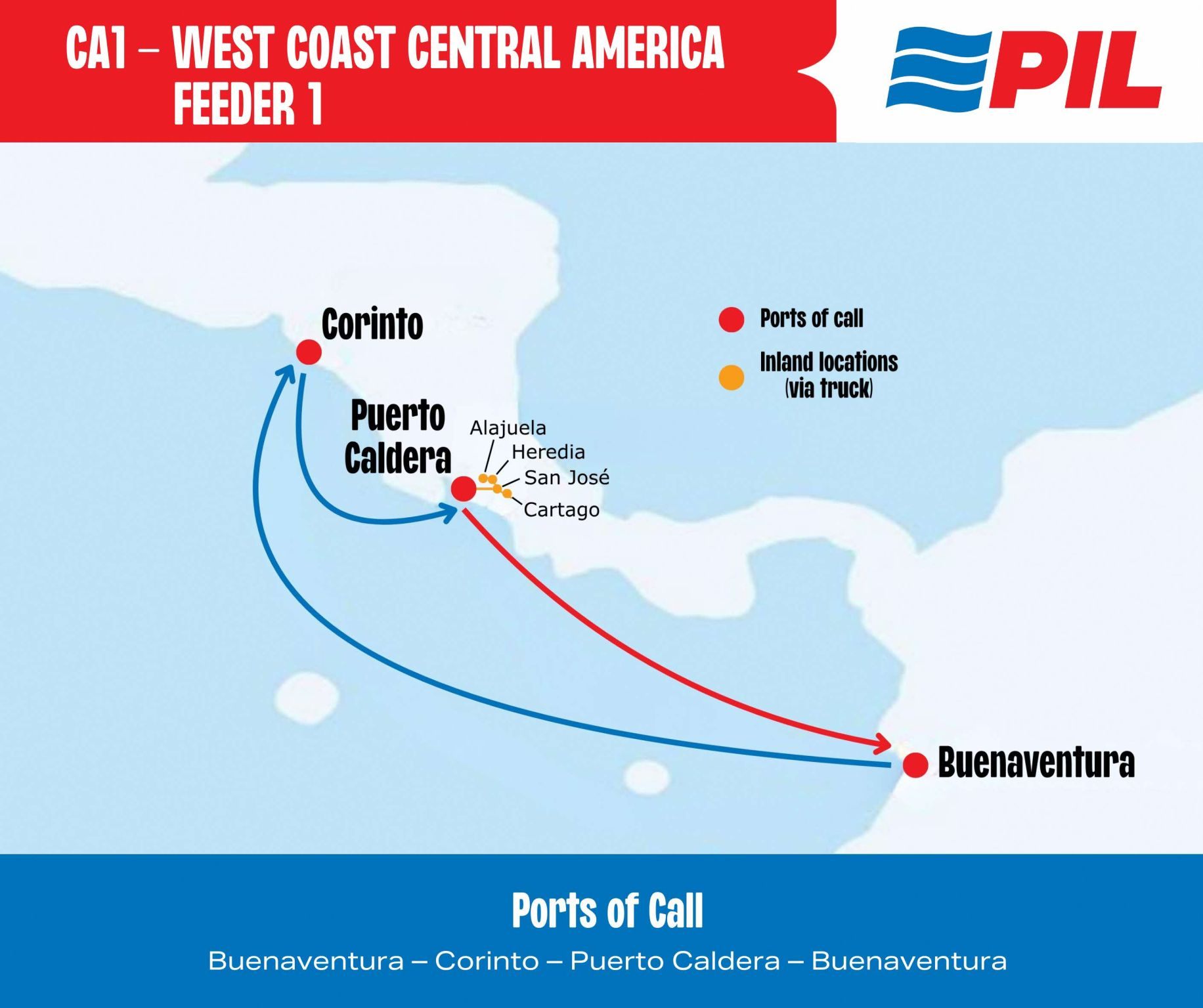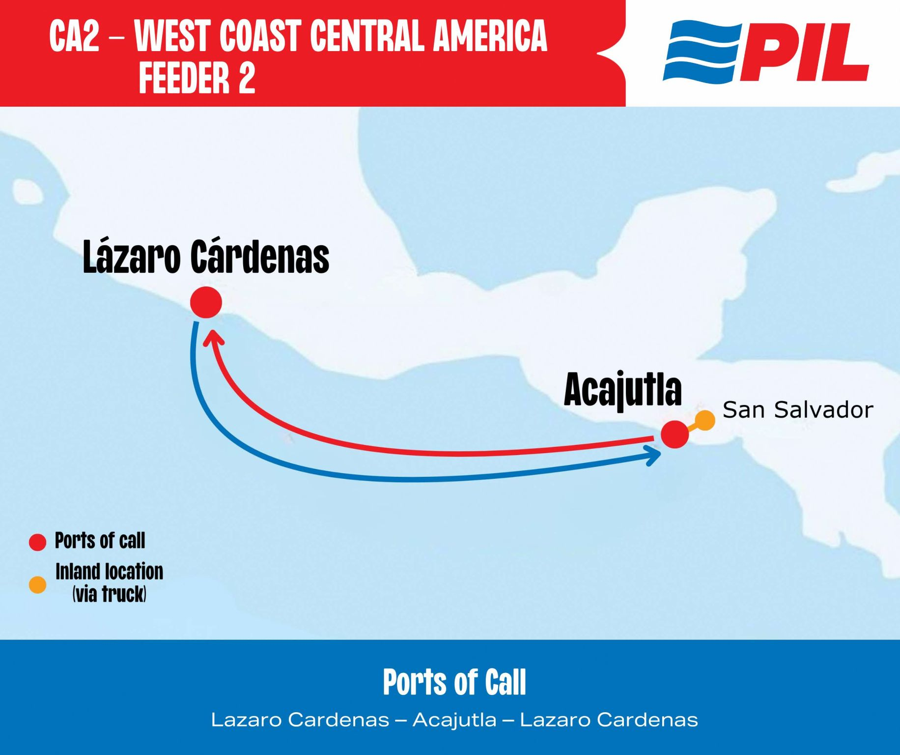 Pacific International Lines (PIL) has launched its new West Coast Central America Feeder 1 and 2 services (CA1 and CA2), making inaugural calls at ports in Costa Rica, El Salvador, and Nicaragua. The services, announced in July, provide customers with efficient and comprehensive access to Central America.