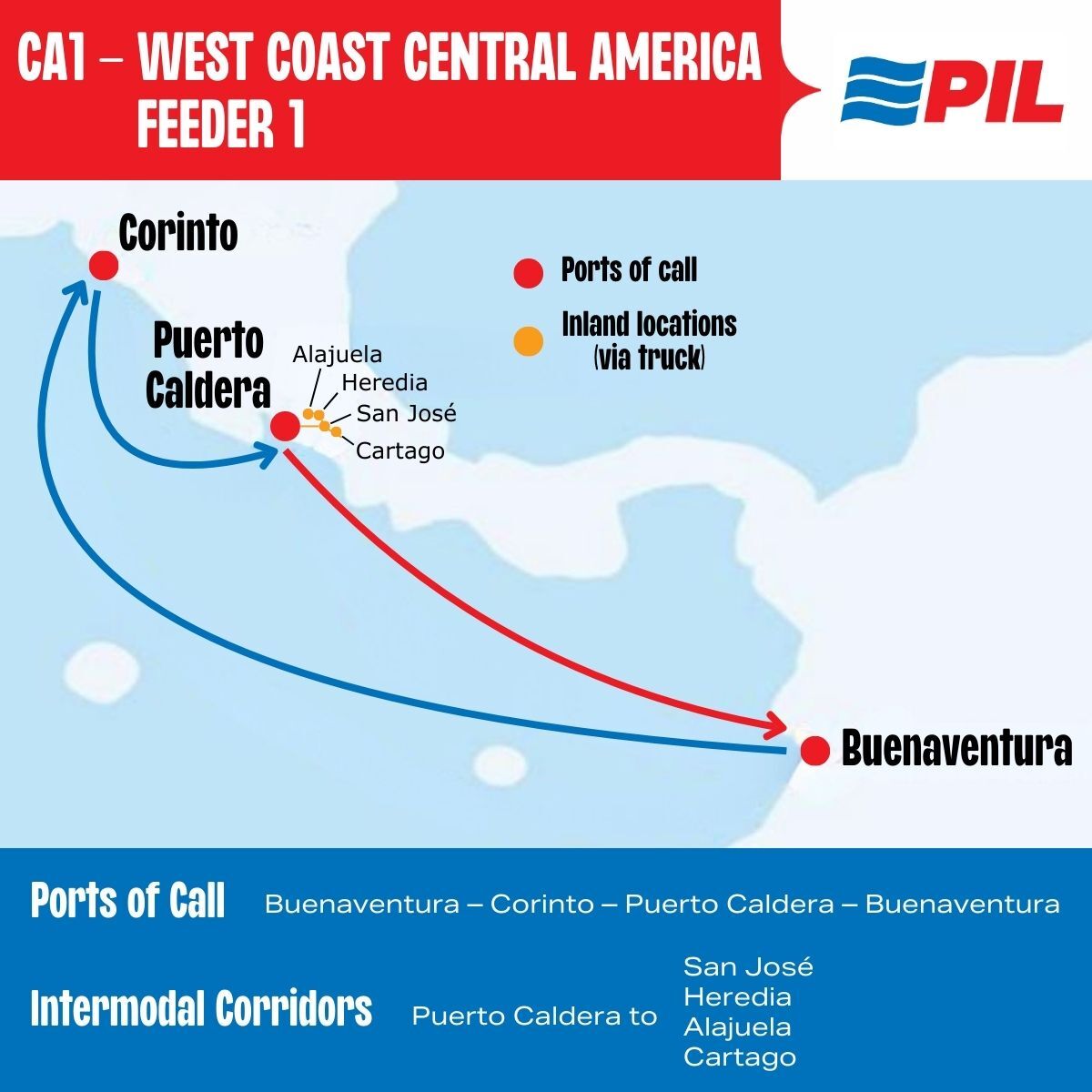 The 40-foot container, carrying vehicle parts, moved from Ningbo, China to Buenaventura, Colombia on PIL’s West Coast South America Service 6. It was then transshipped to Puerto Caldera, Costa Rica via the newly launched West Coast Central America Feeder 1 service.