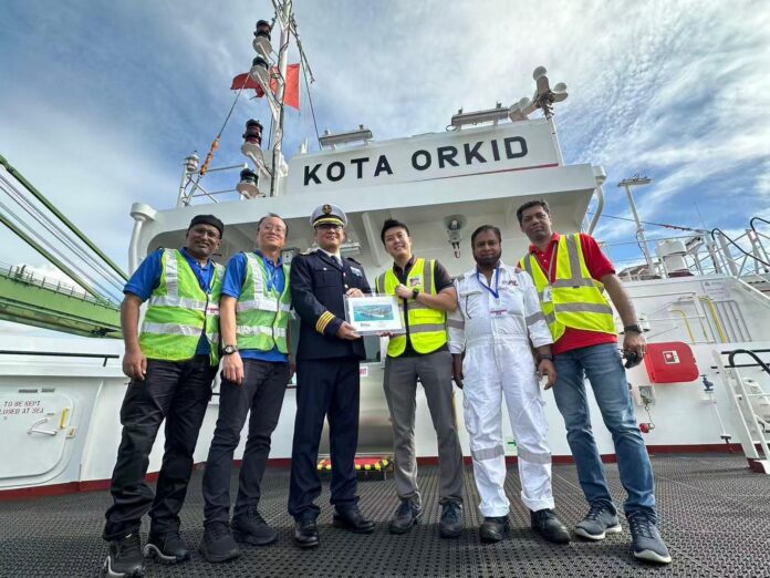 To mark the occasion, PSA Singapore presented a commemorative plaque to Master Capt. Kan Liang, who in turn gifted a miniature replica of Kota Orkid to PSA.