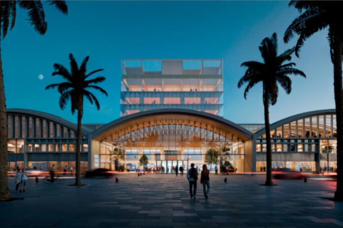 The building will retain the original 1960s warehouse structures, featuring a central promenade, an eight-storey tower, and laboratories. Also, it will have exhibition areas, training rooms, and an auditorium. Sustainability features include geothermal energy using seawater, 500 kW photovoltaic panels, greywater reuse, and biophilic interior spaces. This ams to reduce irrigation and water tank consumption by up to 70% and 50% respectively.