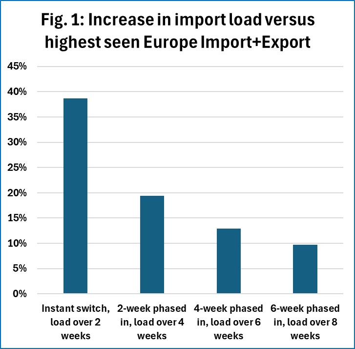 This translates to a 39% surge in total port handling volumes, compared to the previous all-time peak. Even a gradual phase-in over 8 weeks would still result in a 10% increase above previous record highs, during that period.