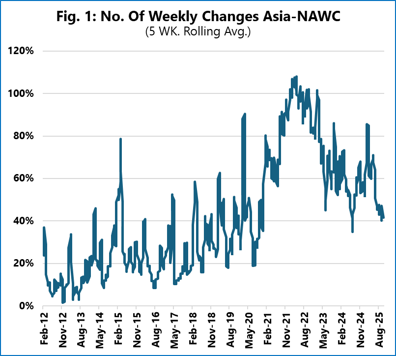 To quantify some such disruptions, Sea-Intelligence developed a new metric that tracks service instability, calculating the percentage of liner services on a trade that have seen a non-standard missing or added sailing. Their analysis reveals a fundamental shift, with the frequency of these weekly disruptions in 2024-2025 increasing by a factor of 2.5-3.5 compared to the pre-pandemic period.