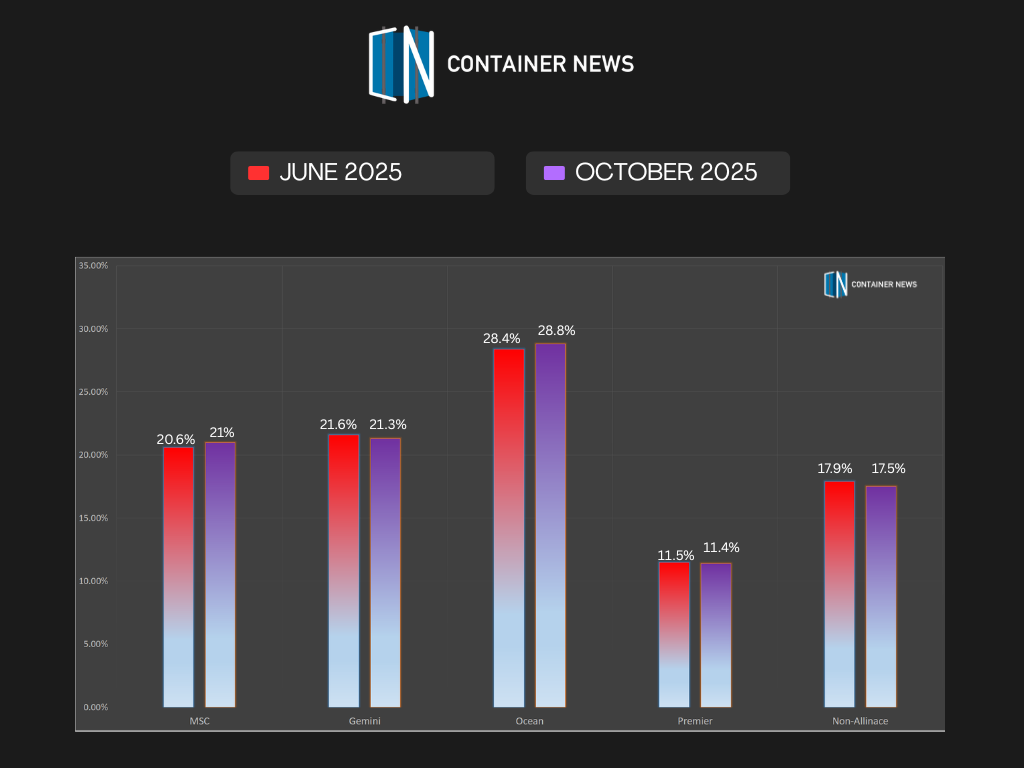 The combined capacity of the major alliances, together with MSC, now accounts for 82.5% of global container shipping capacity, up from 82.1% four months ago, leaving 17.5% with non-alliance carriers, down from 17.9% reported in June. The slight shift underscores the continued concentration of capacity among the industry’s largest cooperative groups.