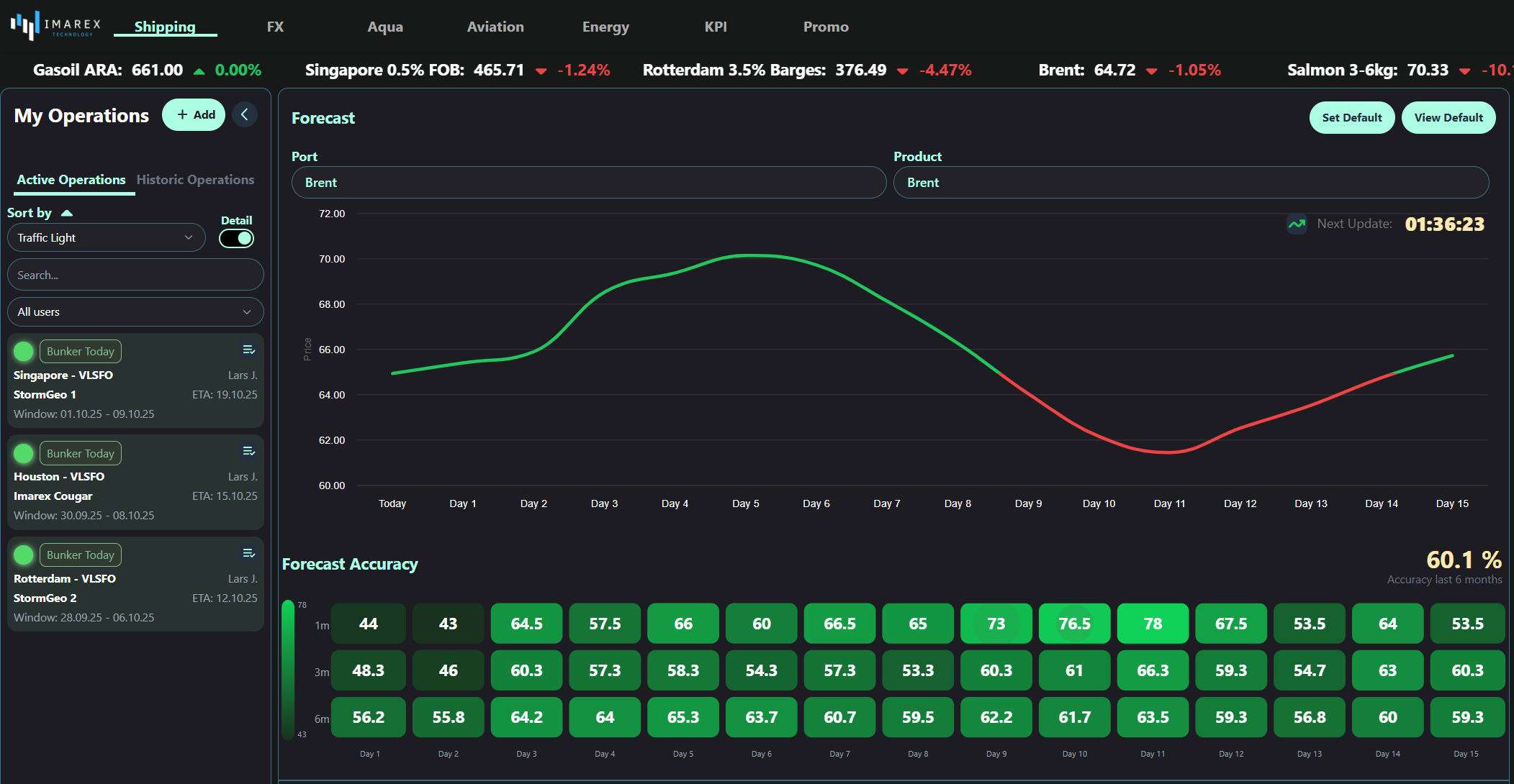 StormGeo’s platform already covers the full bunker lifecycle, including planning, optimization, RFQ handling, documentation, and claims. With Imarex’s predictive Traffic Light signals embedded, users can now also benefit from market timing insights within the same workflow.
